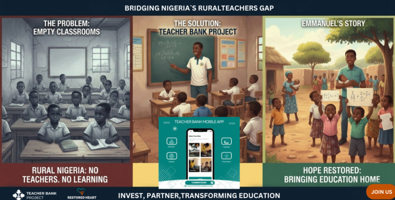 The Restored Heart Foundation’s Teacher Bank Project begins from a simple observation: there are qualified teachers in Nigeria who are unemployed, underemployed, or working in fields outside education, not because they do not want to teach, but because the system has not connected them to the schools that need them most.